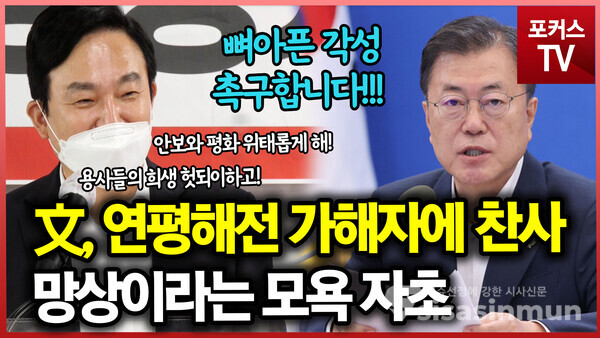 [시사신문 / 임희경 기자] 원희룡 제주지사가 페이스북에 "문재인 대통령은 용사들의 희생을 헛되이 하며 국가의 안보와 평화를 위태롭게 하고 있다"며 "반성하지 않는 가해자에게 찬사를 보내 국제 인권단체로부터 망상이라는 모욕까지 자초하고 있다"고 말했다. 관련기사 이통3사 인터넷 속도 논란...'사업자가 직접 챙기도록 추진' 키워드 #원희룡 #문재인 #연평해전 #가해자 #찬사 #망상 #모욕 #포커스tv 임희경 기자 sisasinmun8@naver.com 다른기사 보기 저작권자 © 시사신문 무단전재 및 재배포 금지 당신만 안 본 뉴스 ‘미드필더 유망주’ 윌호프트-킹, 맨시티 떠나 옥스퍼드대 진학? BGF리테일, CU 하와이 1호점 오픈…“K-푸드와 K-라이프스타일 전파” 박수영 “공직자 12·3 TF, ‘색출 쇼’…110만 명 잠재 범죄자 취급” 장동혁, 대장동 현장 방문…“이재명 대통령 책임져야” 음바페, 우크라이나전 멀티골로 통산 400골 달성… 팀은 4-0 대승 “민주당, 대장동 항소 포기 검사 국정조사 요구… ‘이번 주 제출’” 떠나는 노만석, 李정권 향해 “검사 징계 논의 멈춰달라” ‘미드필더 유망주’ 윌호프트-킹, 맨시티 떠나 옥스퍼드대 진학? 개의 댓글 회원로그인 작성자 비밀번호 댓글 내용입력 댓글 정렬 최신순 추천순 답글순 BEST댓글 BEST 댓글 답글과 추천수를 합산하여 자동으로 노출됩니다. 닫기 더보기 댓글삭제 삭제한 댓글은 다시 복구할 수 없습니다. 그래도 삭제하시겠습니까? 비밀번호 닫기 댓글수정 댓글 수정은 작성 후 1분내에만 가능합니다. 본문 / 400 비밀번호 닫기 내 댓글 모음 닫기