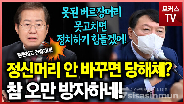 [시사신문 / 임희경 기자] 국민의힘 홍준표 의원이 페이스북에서 윤석열 전 검찰총장에게 "들어온지 석달밖에 안된 사람이 뭐 정신머리 안 바꾸면 당해체 해야 한다? 참 오만 방자하다"며 "못된 버르장머리 고치지 않고는 앞으로 정치 계속 하기 어렵겠다"고 말했다.