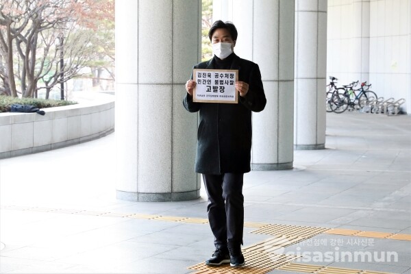 [시사신문 / 오훈 기자] 법치주의 바로 세우기 행동연대(법세련) 대표가 17일 오전 서울 서초구 대검찰청 앞에서 기자 70여명·야당 정치인 7명·야당 대선후보 캠프 관계자 등을 무차별적인 통신자료조회와 관련 김진욱 공수처장과 성명불상의 공수처 관계자를 허위공문서작성·동행사 및 위계에 의한 공무집행방해 혐의로 형사고발하는 기자회견을 하고 있다.