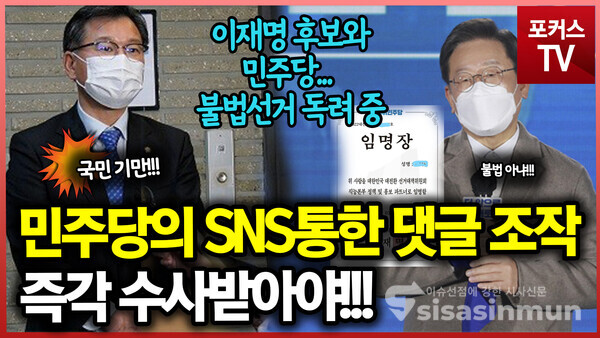 [시사신문 / 임희경 기자] 국민의힘 선대본부 이양수 수석대변인이 논평을 통해 "이재명 더불어민주당 대선 후보와 민주당이 카카오톡 오픈채팅방을 통해 불법이며 조직적 댓글 조작을 하고 있는 정황이 발견됐다."면서 "국민을 기만하는 민주당은 불법 행위 사과하고 즉각 수사받아야 한다"고 말했다.