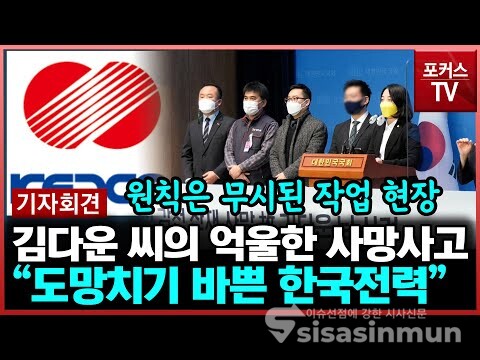 [시사신문 / 이강산 기자] 정의당 류호정 의원과 김응호 정의당 부대표, 이태의 민주노총 부위원장, 류하경 소송대리인 변호사, 유족대표가 22년 1월 13일 국회 소통관 기자회견장에서 한국전력 협력업체 직원 고 김다운 씨의 감전 사고와 관련해 형사고소 및 민사손해배상 청구를 촉구하는 기자회견을 하고 있다.