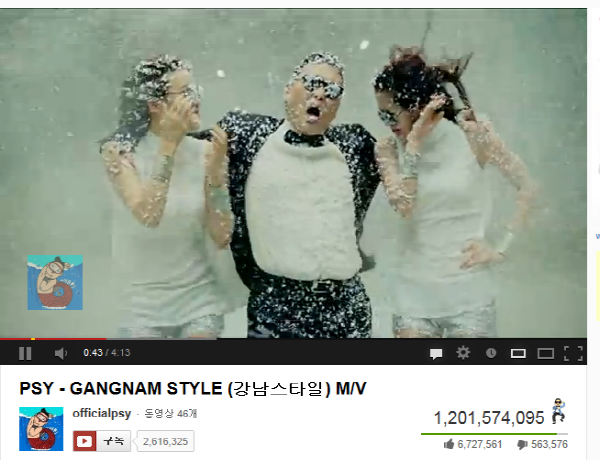 17일 ‘강남스타일’은 조회 수 12억 157만 4095건을 기록하며 지난 1일 11억 건을 돌파한 것에 이어 보름 만에 12억 건을 돌파하며 거침없는 상승세를 이어가고 있다.