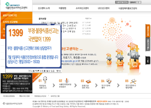 물론, 인터넷으로도 신고가 가능하다. 식약청의 ‘식품안전소비자신고센터’로 신고하면 된다.