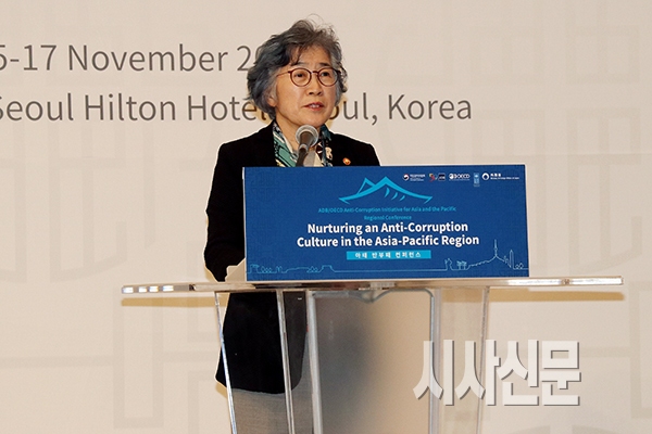 ▲ [시사신문 / 오훈 기자] 박은정 국민권익위원장이 15일 오전 밀레니엄 힐튼 호텔에서 열린 'ADB/OECD 아태 반부패 컨퍼런스'에서 개회사를 하고 있다.[시사신문 / 오훈 기자] 박은정 국민권익위원장이 15일 오전 밀레니엄 힐튼 호텔에서 열린 'ADB/OECD 아태 반부패 컨퍼런스'에서 개회사를 하고 있다.