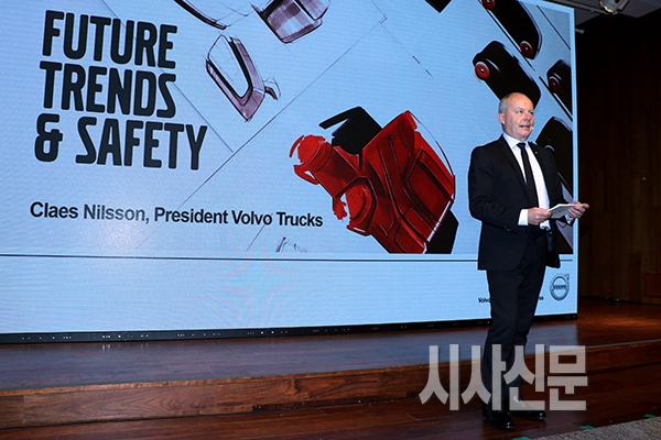 ▲ [시사신문 / 오훈 기자] 15일 오전 서울 중구 신라호텔에서 열린 볼보트럭코리아 기자간담회에서 클라스 닐슨 볼보트럭 사장이 볼보트럭의 비전에 대해 발표했다.[시사신문 / 오훈 기자] 15일 오전 서울 중구 신라호텔에서 열린 볼보트럭코리아 기자간담회에서 클라스 닐슨 볼보트럭 사장이 볼보트럭의 비전에 대해 발표했다.