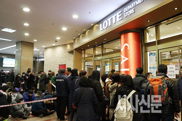 ▲ [시사신문 / 오훈 기자] 22일 오전 서울 영등포구 롯데백화점 영등포점에는 평창 동계올림픽을 기념해 제작된 평창 롱패딩을 구입하기 위해 많은 고객들이 줄 서 있다.[시사신문 / 오훈 기자] 22일 오전 서울 영등포구 롯데백화점 영등포점에는 평창 동계올림픽을 기념해 제작된 평창 롱패딩을 구입하기 위해 많은 고객들이 줄 서 있다.
