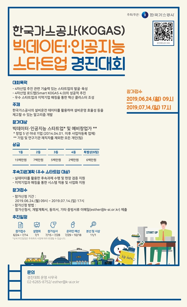 [시사포커스 / 임솔 기자] 한국가스공사(이하 가스공사)는 우수 스타트업을 발굴‧육성하기 위해 축적된 설비운전 데이터를 활용해 ‘빅데이터‧인공지능 스타트업 경진대회’를 개최한고 24일 밝혔다.