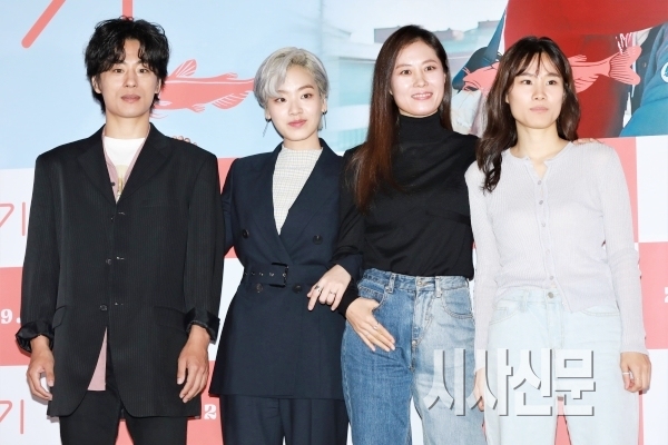 [시사신문 / 오훈 기자] 17일 오후 서울 용산구 CGV 용산아이파크몰에서 열린 영화 '메기' 언론시사회 및 기자간담회에서 배우 구교환, 이주영, 문소리, 이옥섭 감독이 포토타임을 갖고 있다.