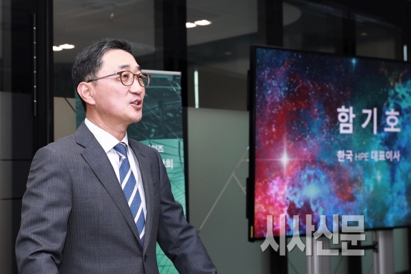 ▲ 함기호 한국HPE 대표이사가 환영사를 하고 있다. [사진 / 오훈 기자][시사신문 / 오훈 기자] 16일 오전 서울 영등포구 한국HPE 사옥에서 열린 2020 신년 기자간담회에서 함기호 한국HPE 대표이사가 환영사를 하고 있다.